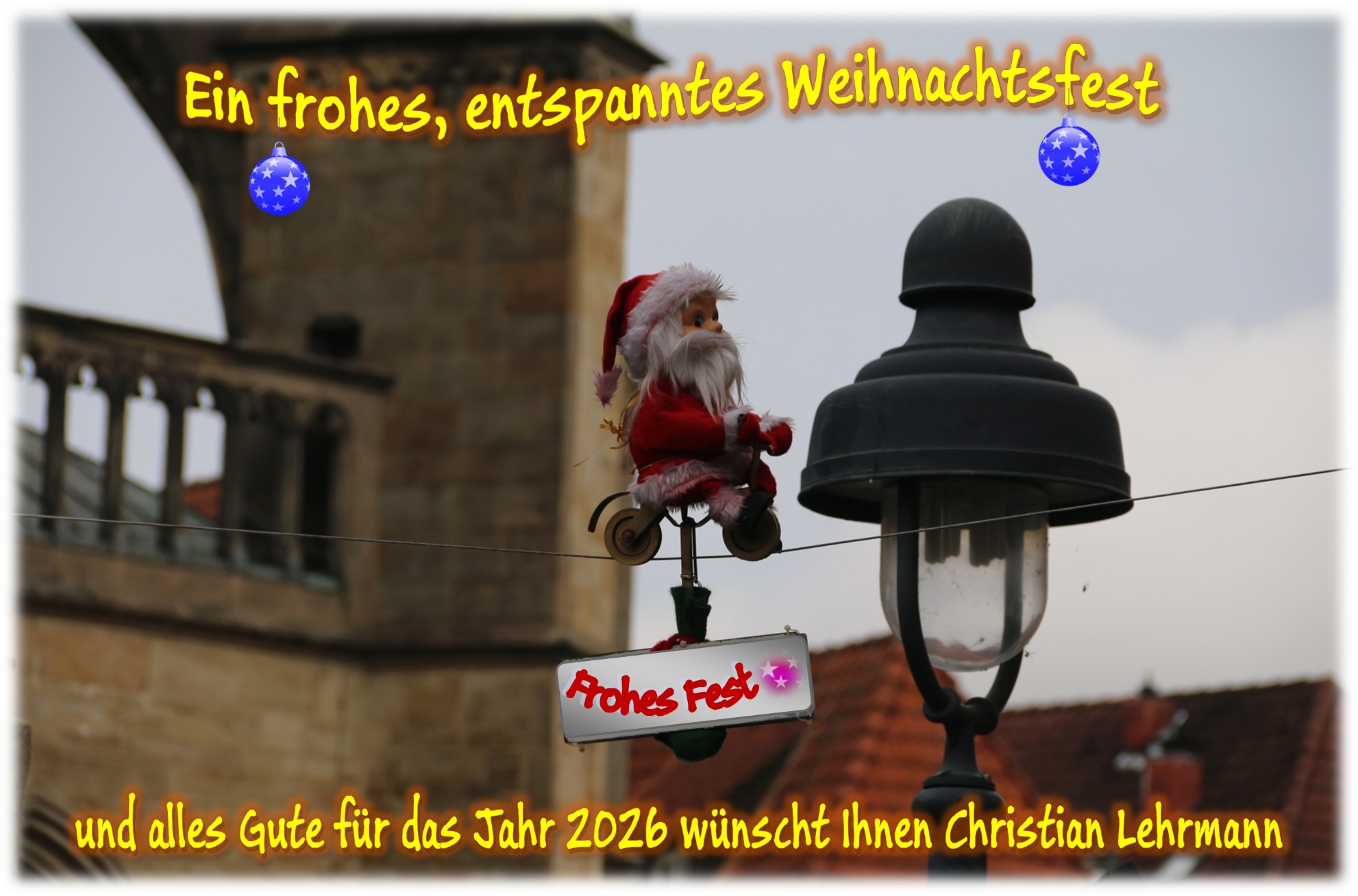 Frohe Weihnachten und einen guten Rutsch in das Jahr 2026 wünsche ich Ihnen