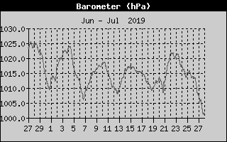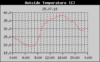 Hallo liebe Leserinnen und Leser, nachdem bereits in der letzten Juniwoche in Wendessen Außentemperaturen über 35 °C gemessen werden konnten, folgte nach deutlich kühleren Tagen in der Woche ab dem 22. Juli die zweite Hitzewelle dieses Sommers, wobei am Standort meiner Wetterstation die höchste Temperatur am Donnerstag, dem 25. Juli gemessen wurde. So lag an diesem Tag die Höchsttemperatur um 15:45 Uhr bei 38,6 °C. Bisher habe ich nur im Jahr 2015 mit 38,7 °C am 4. Juli 2015 um 15:00 Uhr eine geringfügig höhere Temperatur gemessen. Im vergangenen Jahr 2018 lag die gemessene Höchsttemperatur am 7. August um 16:30 Uhr bei 37,6 °C Die folgende Abbildung zeigt den Temperaturverlauf am 25. Juli 2019: [OutsideTempHistory] Hier ist auch gut zu erkennen, dass auch die Kriterien einer Tropennacht mit einem Temperaturminimum nicht unter 20 °C nur knapp verfehlt wurde. Auch in der Nacht zum Freitag fiel die Temperatur auf 19,9 °C und somit ganz knapp unter die Grenze einer tropischen Nacht. Der Freitag und der Samstag fielen dann wieder etwas kühler aus: [OutsideTempHistory month] [BarometerHistory072019] Der gemessene Verlauf der Temperatur und des Luftdruckes für die vergangenen 30 Tage Auffällig ist hierbei auch der deutliche Abfall des Luftdruckes ab dem 25. Juli, so dass unbeständigeres Wetter zu erwarten ist. An anderen Orten sind am Donnerstag die gemessenen Temperaturen noch deutlich höher gewesen - Die Neue Osnabrücker Zeitung<http://www.noz.de> berichtete gestern, dass in Lingen im Emsland an der Wetterstation des Deutschen Wetterdienstes eine Temperatur von 42,6 °C gemessen wurde. Es bleibt also spannend, wie sich das Wetter im Sommer 2019 weiter entwickelt - Fortsetzung folgt. [viele Gruesse] Die für den 25. Juli 2019 aufgezeichneten Minimum-Maximum Werte: Wetterdaten - Report: Wendessen bei Wolfenbüttel 79 m über NN Donnerstag, 25. Juli 2019 - 22:45 Temperatur Außen aktuell 28,5 °C Durchschnitt 29,2 °C Min. 18,8 °C 06:30 Max. 38,6 °C 15:45 Eistage Jahr 3 Tage Frosttage Jahr 30 Tage kalte Tage Jahr 57 Tage Sommertage Jahr 41 Tage heiße Tage Jahr 16 Tage Temperaturänderung der letzen 5 Min. -0,3 °C der letzen 60 Min. -0,4 °C Luftfeuchte Außen aktuell 48 % Durchschnitt 52 % Min. 30 % 16:00 Max. 81 % 06:15 Taupunkt aktuell 16,4 °C Durchschnitt 17,1 °C Min. 15,4 °C 05:15 Max. 20,2 °C 10:00 Windchill aktuell 28,5 °C Durchschnitt 29,2 °C Min. 18,9 °C 05:45 Max. 38,4 °C 15:30 Solarstrahlung aktuell 0 W/m² Durchschnitt 395 W/m² Min. 0 W/m² 23:00 Max. 738 W/m² 13:30 UV-Index aktuell 0 UV-I Durchschnitt 2 UV-I Min. 0 UV-I 23:00 Max. 3 UV-I 14:15 Sonnenscheindauer heute 9:00 Stunden Jahr 785:45 Stunden Windgeschwindigkeit aktuell 0,0 km/h 0 Bft Durchschnitt 0,0 km/h 0 Bft Max. 1,6 km/h 1 Bft 12:00 Windböen aktuell 0,0 km/h 0 Bft Durchschnitt 2,3 km/h 1 Bft Max. 12,9 km/h 3 Bft 23:15 Windrichtung aktuell N 0 ° dominierend O-SO Niederschlag letzte Std. 0,0 l/m² letzten 24 Std. 0,0 l/m² dieser Tag 0,0 l/m² aktuelle Woche 0,3 l/m² aktueller Monat 26,7 l/m² aktuelles Jahr 351,0 l/m² Regen / Jahr 97 Tage Luftdruck aktuell 1013,7 hPa Durchschnitt 1014,7 hPa Min. 1013,4 hPa 19:00 Max. 1015,9 hPa 08:15 Luftdruckänderung +0,1 hPa/1h +0,1 hPa/2h +0,2 hPa/3h -0,2 hPa/6h -1,7 hPa/12h -1,0 hPa/24h \\\|/// \\ - - // ( @ @ ) ----------------oooO-(_)-Oooo---------------- Dr.-Ing. Christian Lehrmann Lindenblick 3 38300 Wolfenbüttel Tel. 05331-992561 Fax. 05331-9968178 http://www.lehrmann.ws -------------------------Oooo---------------- oooO ( ) ( ) \ ( \ ( \_) \_)